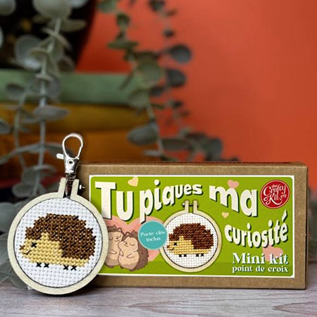 Kit broderie tu piques ma curiosité, avec un petit hérisson comme compagnon. Ce kit de point de croix est rempli de tendresse, facile à réaliser! il est à offrir, comme message même à une personne débutante.