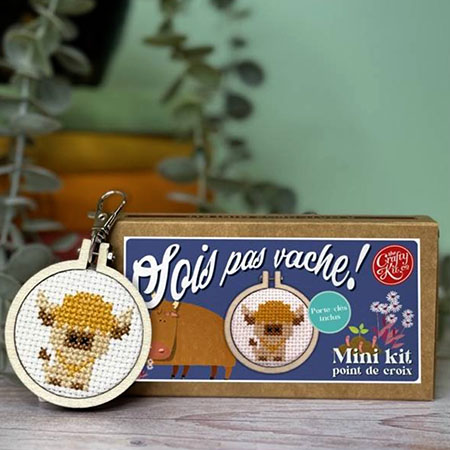 Kit point de croix sois pas vache, petit kit de broderie, rempli d'une attention particulière. Un mot tendre, un clin d’œil, une pointe d'humour, à offrir ou à s'offrir.
