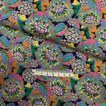 Liberty Clifford street, en collection limité 2025! motif floral audacieux inspiré des années 1970 de la gamme Liberty Tana Lawn de la maison Liberty London. Larges fleurs avec feuillage stylisées avec des couleurs vives le tout sur un fond uni bleu navy. Ce tissu 100 % coton, léger et fluide rappelle la qualité de la soie. la Maison Liberty est reconnue dans le monde entier pour la qualité incomparable de ses cotons imprimés, qui assure une finesse extrême, une douceur soyeuse et une légèreté, tout en conservant la facilité d’entretien et la résistance du coton.