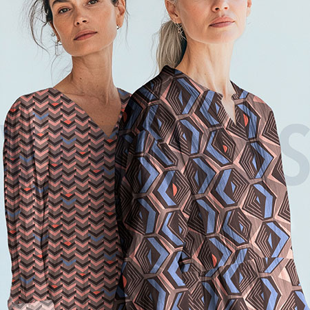 Satin géométrie au motif moderne et aux couleurs tendances. Tons bruns et bleu avec une touche lumineuse de orange. Composé de coton, ce satin à l'effet lisse du satin, avec la douceur du coton. Très agréable à coudre et à porter il est adapté à la mode avec une blouse estivale ou des accessoires, comme un coussin ou un foulard.