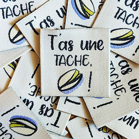 Actuellement accessoire très tendance, notre mercerie A Bout De fil sélectionne des étiquettes tissées de créateurs, made in France, de la marque Marmaï. La fameuse phrase "t'as une tache pistache" est un délicieux souvenir d'enfance et d'école, adaptée pour les enfants comme pour les adultes.