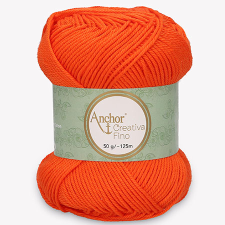 Anchor Créativa fino orange, coloris orange vif, parfait pour les accessoires et la mode. Ce fil de coton mercerisé fin, se compose de 4 brins de fils fortement torsadés, qui est très agréable à travailler. Il ne se dédouble pas au crochet, ni au tricot quand on le travaille. Ce fil est à l'épreuve du temps, et des lavages par sa résistance. Il répond à la norme européenne OEKO-TEX 100, ce qui garantie des ouvrages adaptés que l'on peut porter directement sur la peau l'été, et aussi pour bébés, layettes, comme pour les jouets. Il est aussi respirant et hypoallergénique pour l'été.